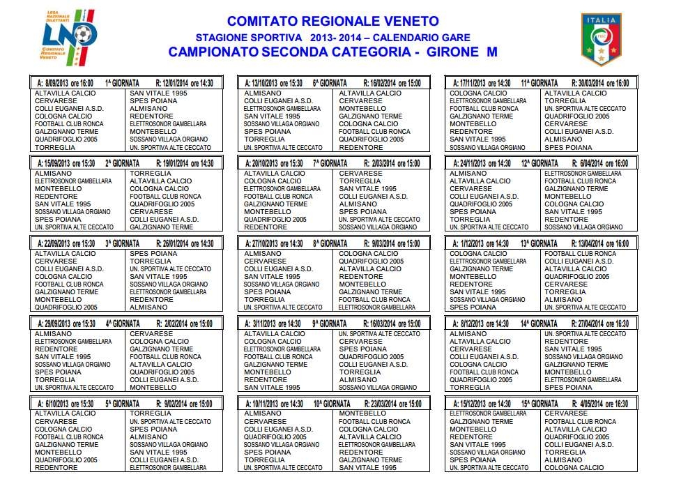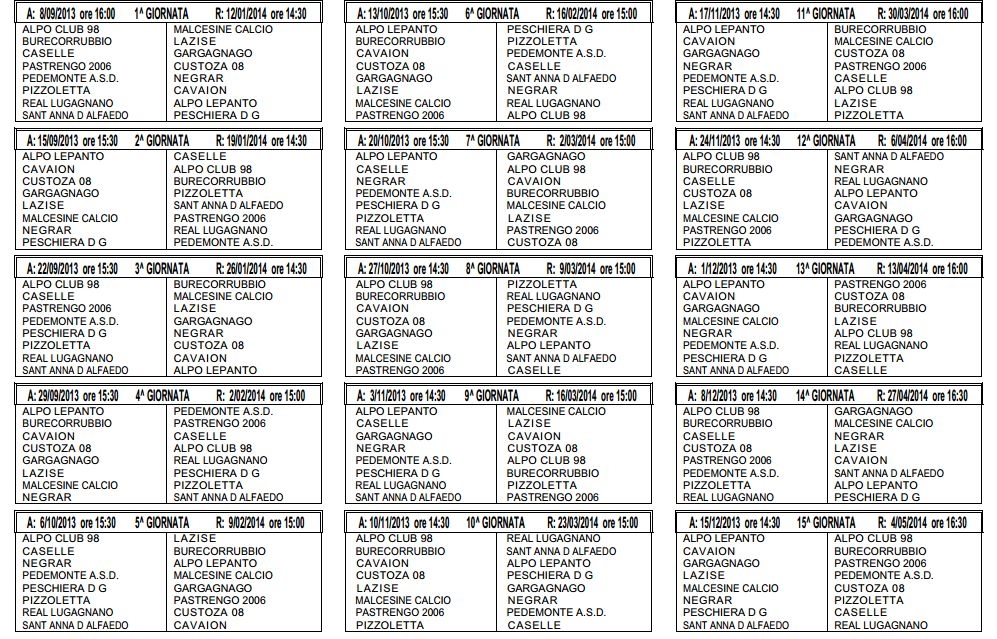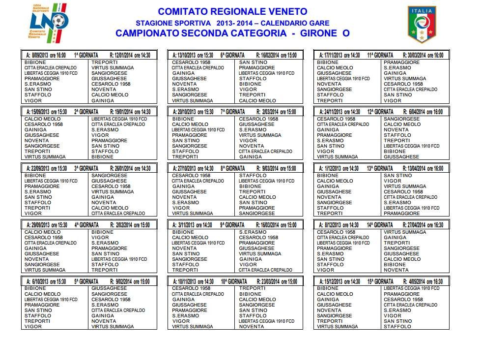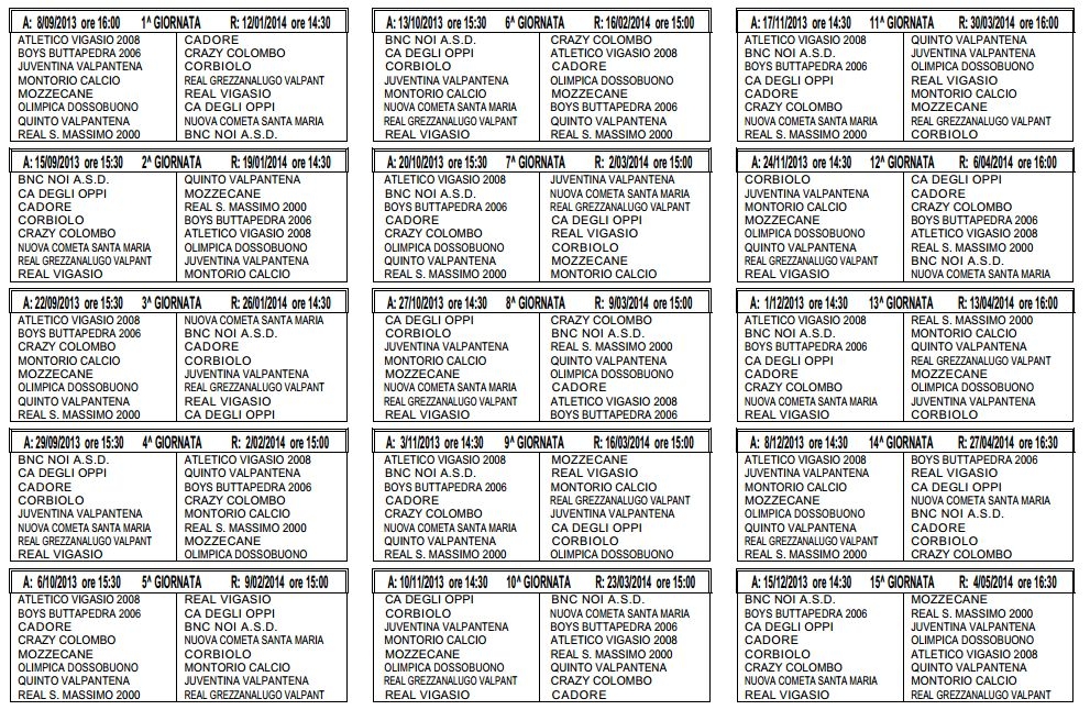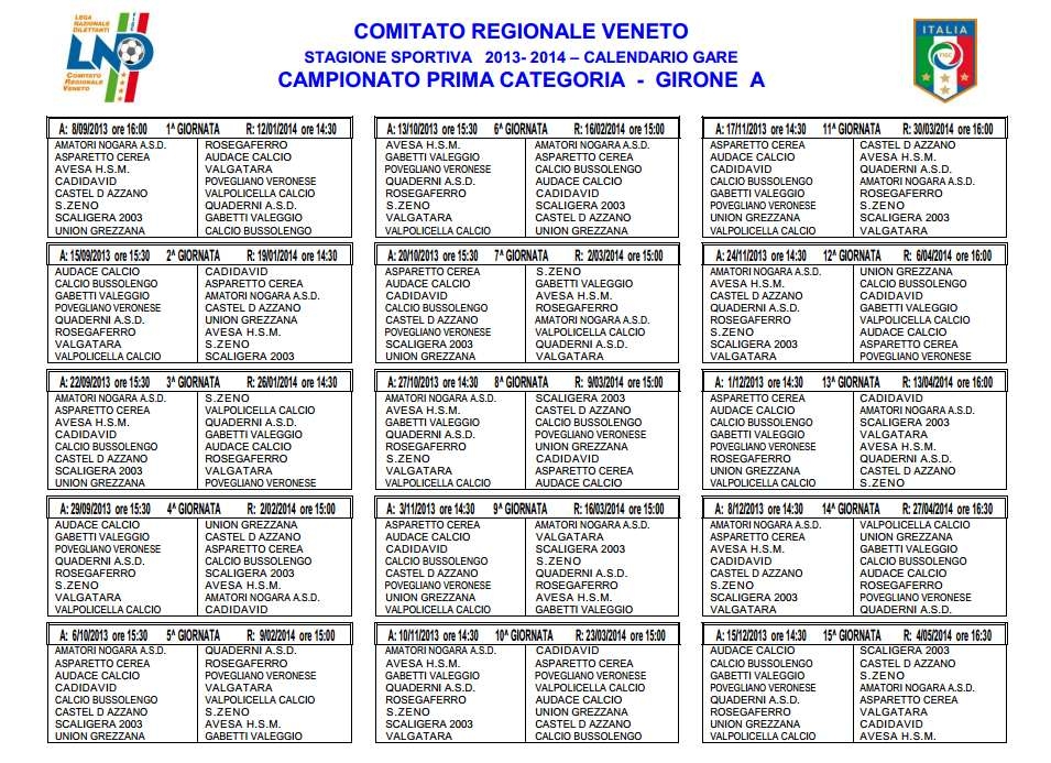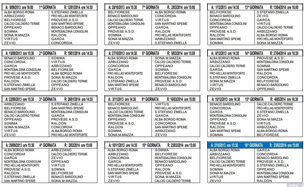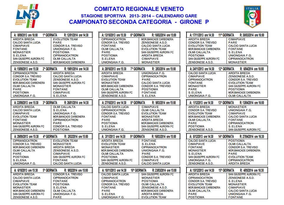 In fondo alla pagina nella galleria le le immagini con i calendari completi . Li stiamo caricando..