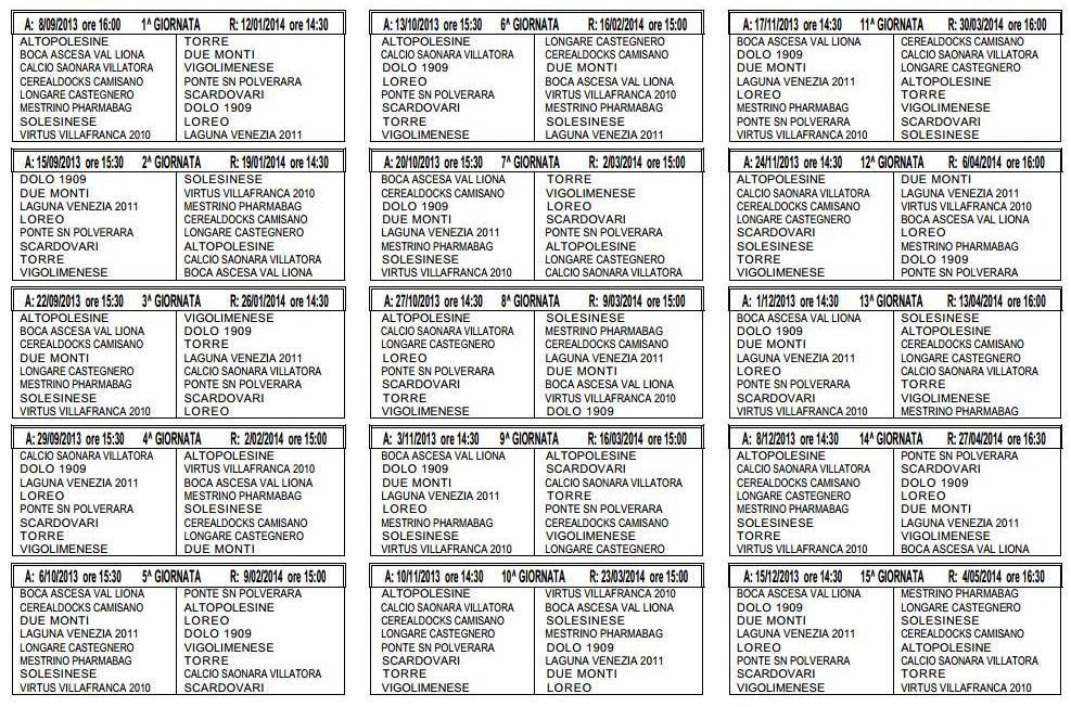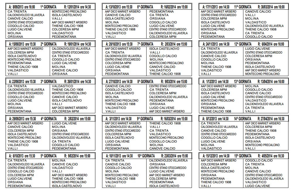 CALCIONOVOLEDO VILLAVERLA ISOLA CASTELNOVO