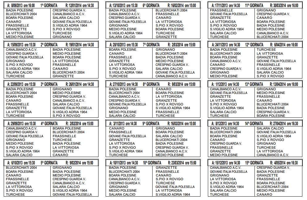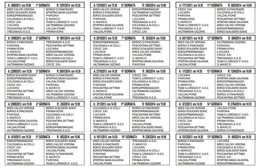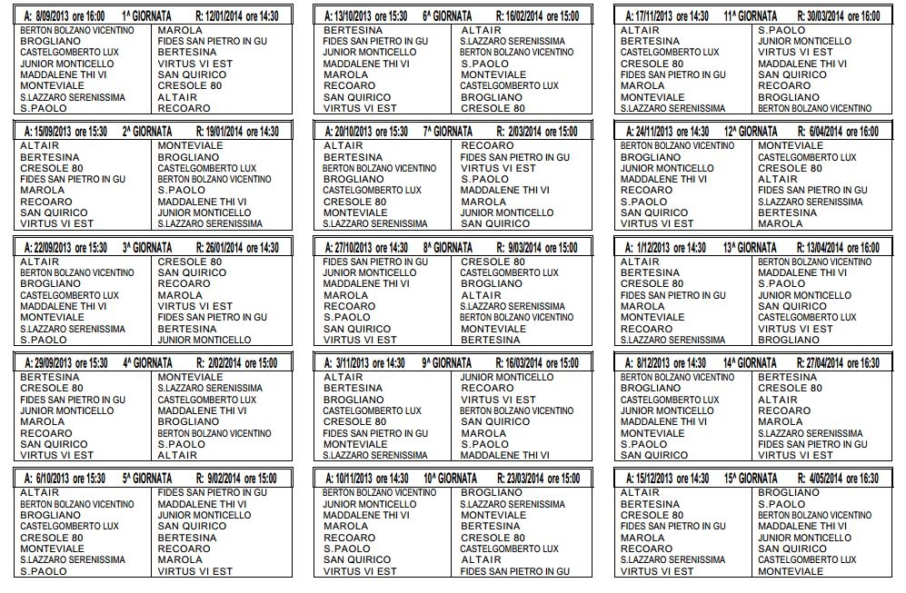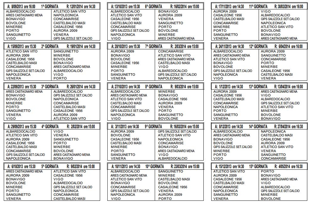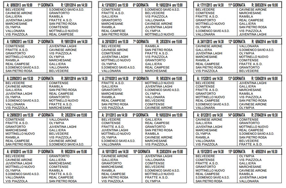 Ecco i calendari: le prime giornate dei campionati 2013-2014...!!!