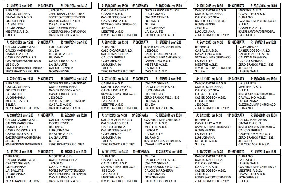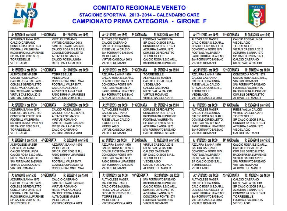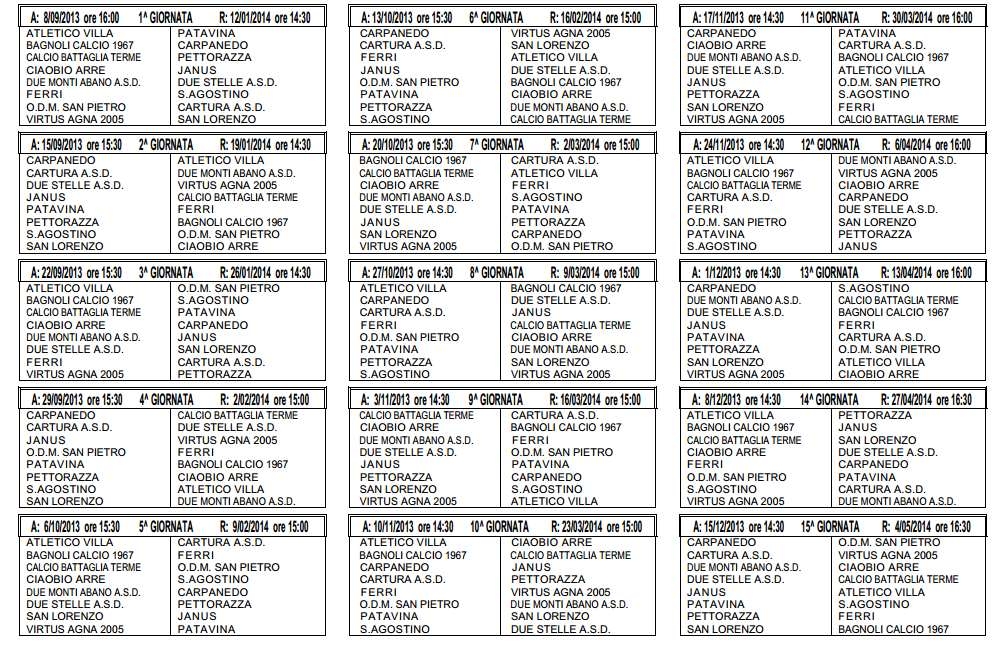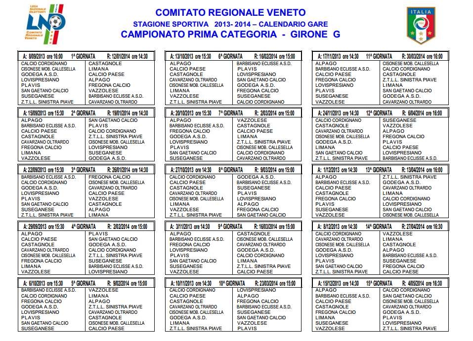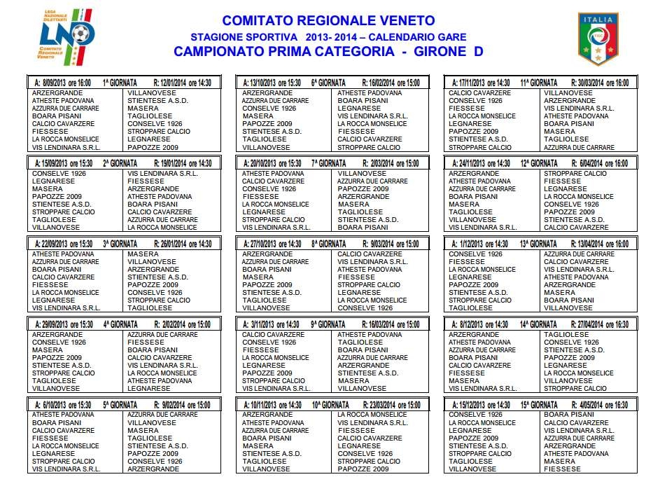 Ecco i calendari: le prime giornate dei campionati 2013-2014...!!!