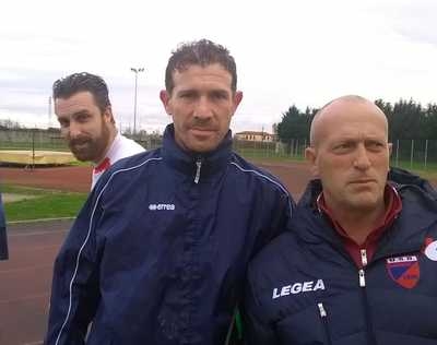 Nella foto: Tiozzo (dietro), l’allenatore in seconda dell'Adriese Gregnanin e l’addetto all’arbitro della squadra rodigina Gorda.