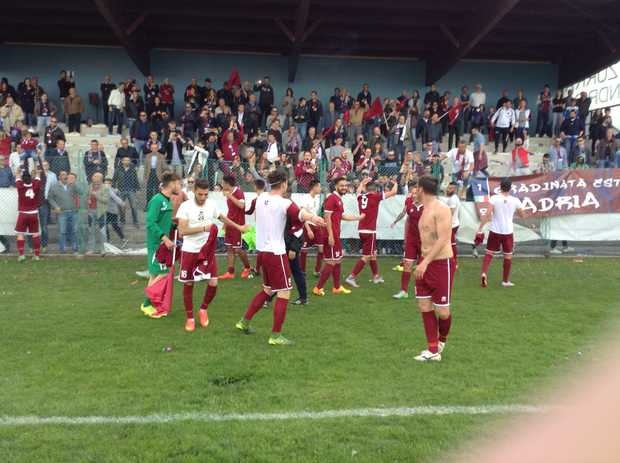 Adriese-champagne! Il primo match point si presenta a Sandrigo e la formazione di Cavallari alla prima esperienza in panchina centra la promozione in SERIE D. La strada si spiana subito all'8': Castellan crossa al centro dove il centrocampista Contro dell'Azzurra Sandrigo che tocca la sfera con il braccio. Per l'arbitro è rigore che implacabilmente Giovanni Guccione trasforma abilmente. Il secondo tempo si apre con l'espulsione di Contro per doppia ammonizione e al 10' un gioiello di Giacomino Marangon il quale scambia con Scarpi e dalla sinistra piazza il tiro del raddoppio a giro sul secondo palo. IL terzo gol è la fotocopia del primo, e sempre lo stesso interprete, Marangon. E' il tripudio granata che vale la D.