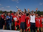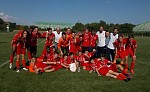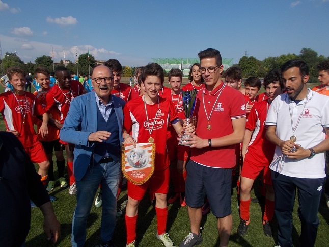 Mirano. Il Giorgione 2000 è la regina del Veneto Giovanissimi. Una finale combattutissima il derby trevigiano. Il Giorgione 2000 schierato davanti ai “coreani” soffre l’iniziale slancio biancoceleste. Al 3’ è Antonello a esibirsi nella prima parata di rilievo. Il Montebelluna prende campo e l’undici biancorosso è costretto a chiudersi. Al 10’ i ragazzi di Paolo Durigon ci riprovano in acrobazia: sul corner scodellato dalla destra dal mediano Cassaro è la testa di Hammadi a svettare con il pallone che sorvola la traversa. Al 12’ si fa vedere in area il Giorgione e sulla linea di porta la difesa allontana il pericolo. Insiste il Team biancorosso con una fiondata di Dalla santa casa che sfiora di centimetri l’incrocio del pali (14’). E’ una partita molto concitata, viva e le azioni si susseguono a ritmo serrato. Al 18’ botta centrale di El-Bouchikhi e Antonello blocca sicuro. Al 22’ palla gol per Maronilli che converge dalla sinistra, ignora a centro Guidolin e spara altissimo. Il n° 7 del Monte al 24’ ha una seconda occasione da sfruttare: tutto nasce da un pasticcio difensivo castellano nel controllo del cuoio in prossimità del’area di porta, Maronilli è rapido a conquistare il pallone e di sinistro con l’intera porta a disposizione calcia alle stelle. Al 30’ gli errori dei ragazzi di mr. Durigon sono puntualmente puniti dal piazzato di Dalla santa casa. Il calcio franco del laterale mancino dal vertice dell’area di rigore alla sinistra di Chin indirizzato a rete trova il “velo” di Diomandè e alle spalle di Pesce e dell’avanzato Fusco che ingannano il portiere evidentemente sorpreso dai due tagli coordinati dagli avanti castellani. Ripresa. E’ un Monte spregiudicato l’undici chiamato a rimontare il passivo. La formazione biancoceleste allarga le maglie e per ben due volte gli attacchi rosso-stellati alimentano la tensione nei sedici metri, ma non si rivelano pericolosi per l’eccessiva frenesia nel preparare il tiro decisivo. Il Montebelluna ha sempre meno tempo a disposizione per impattare le sorti della finale e ogni proiezione offensiva sviluppata con una manovra pratica, pecca nella precisione al tiro. Dalla parte opposta il Giorgione 2000 a più riprese cerca di piazzare il colpo del ko. Al 12’ sull’azione verticale organizzata dai “diavoli rossi” castellani è Guidolin a smarcare sul mancino Behiratche e la conclusione radente centra il palo alla sinistra di Chin. E’ una fase del match in cui è la formazione castellana a mettere a profitto un migliore assieme e sfruttare le sbavature difensive montelliane. Al 22’ il raddoppio nasce sull’aggiramento dalla sinistra di Pontin, il centravanti centra a mezza altezza e Behiratche staccatosi dalla marcatura di interno destro in sospensione anticipa l’intervento del portiere e appoggia il cuoio in rete 2-0. La finale è segnata e il doppio vantaggio rosso stellato segna la resa del Monte che al 27’ prova a dimezzare il divario su calcio di punizione di Guidolin.