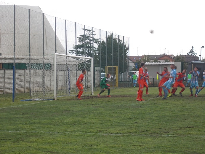 Il via della gara alle ore 16. Attacca deciso il Cjarlins e al 1’, a coronamento di un doppio aggiramento sulla destra portato da Bussi, il cross teso dell’estrema taglia come il burro la difesa biancoceleste e l’ incornata a rete di Smrtnik è una deviazione fulminea per l’intervento di Colonna. E’ un’onda in piena l’undici di De Agostini che al 5’ dopo centra la traversa con Smrtnik con una fiondata dalla lunetta dei 16 metri. Al 9’ il doppio vantaggio degli oranje: l’azione la ripropone sulla destra per Bussi (imprendibile per Bulgarella) e sul cross è la capoccia di Spetic a brillare per tempismo. Il Sandonà stordito e in balia dalla girandola tecnica esercitata dai padroni di casa, fatica a fare filtro. Dalla parte opposta Scordino se la passa tranquillo. Al 27’ Dellapiccola non s’avvede di una evidente strattonata su Beccia in coordinazione al tiro. Al 29’ altro pericolo dal settore destro. E’ sempre Bussi a imperversare e sul centro basso Uliari e De March in scivolata anticipano l’entrata di Kabine. Le emozioni si susseguono e al 31’ sul piazzato dalla trequarti di Duravia, il pallone scende sulla testa di Smirtnik che centra la faccia interna della traversa; il pallone rimbalza oltre la linea (?), ma Dellapiccola non se la sente di assegnare il terzo gol. E’ una frazione dominata nel ritmo dalla formazione di De Agostini che lascia le briciole e pochi spiragli a Paladin e compagni. Nel quarto finale i biancocelesti escono allo scoperto, giocando alla pari, ma non trovano mai sbocchi che porti alla conclusione.
