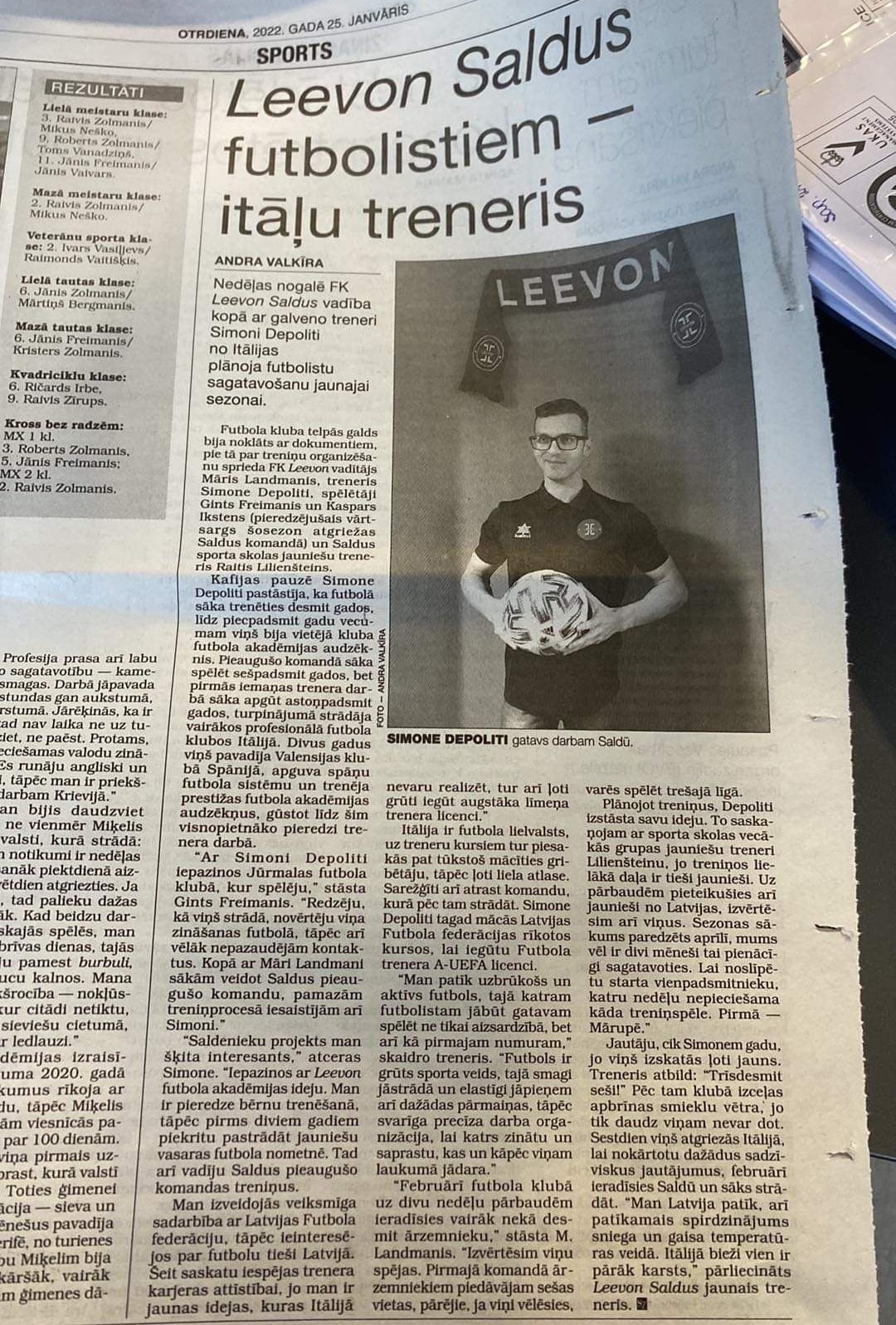 Nella foto in galleria: la notizia dell’arrivo di mister Depoliti riportata sulla testata locale Saldus Zeme.