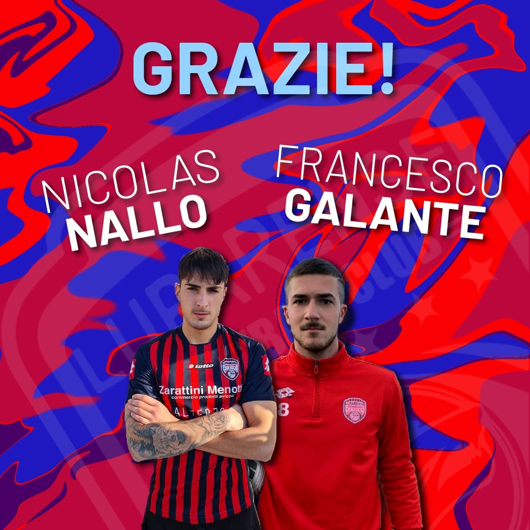 La Luparense ha ufficializzato le uscite del difensore Nicolas Nallo (era arrivato a dicembre) che viene ceduto al Lamezia Terme, e del portiere Francesco Galante che è stato posto in lista di svincolo (foto in galleria). Entrambi nati nel 2002.