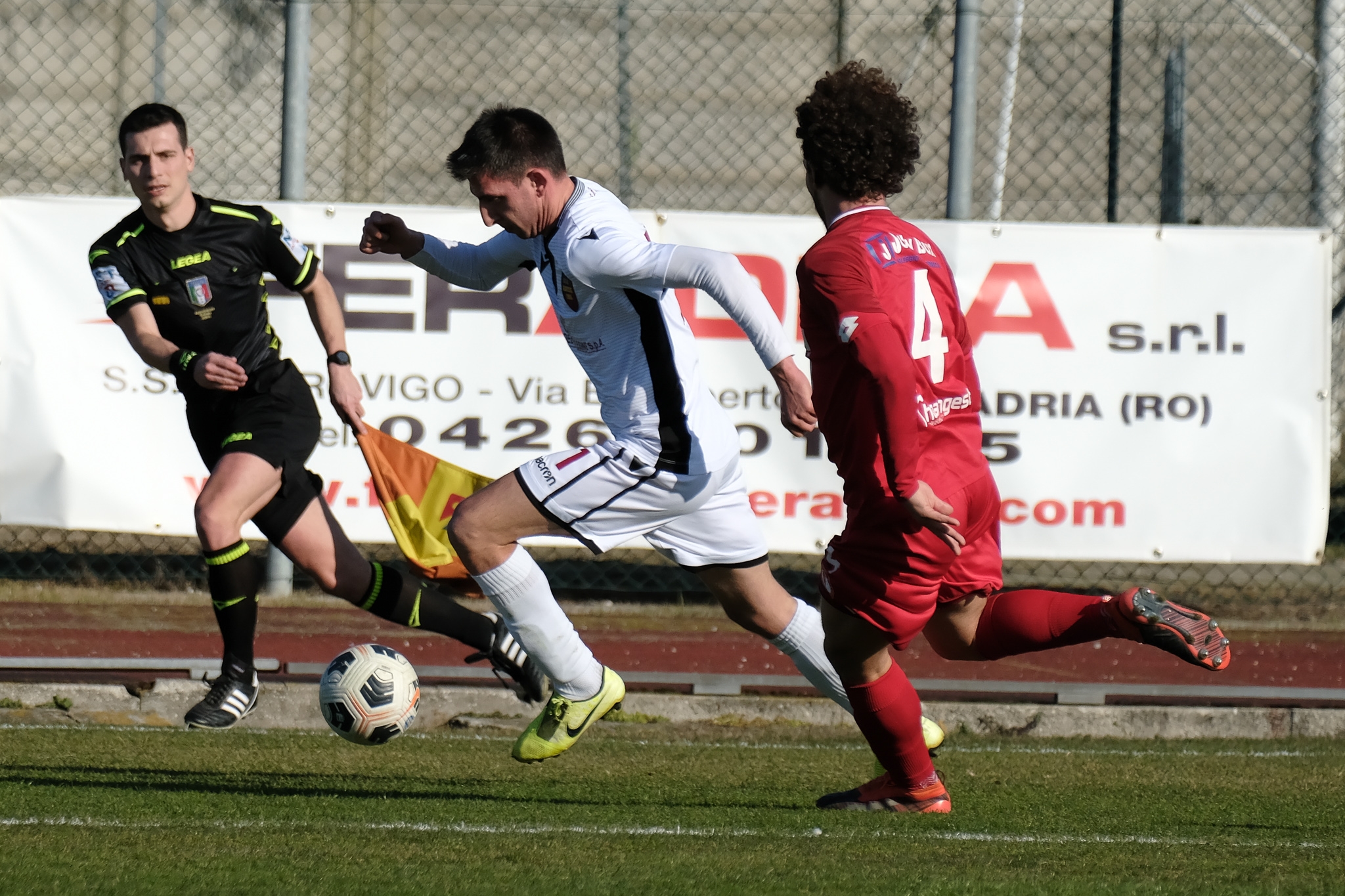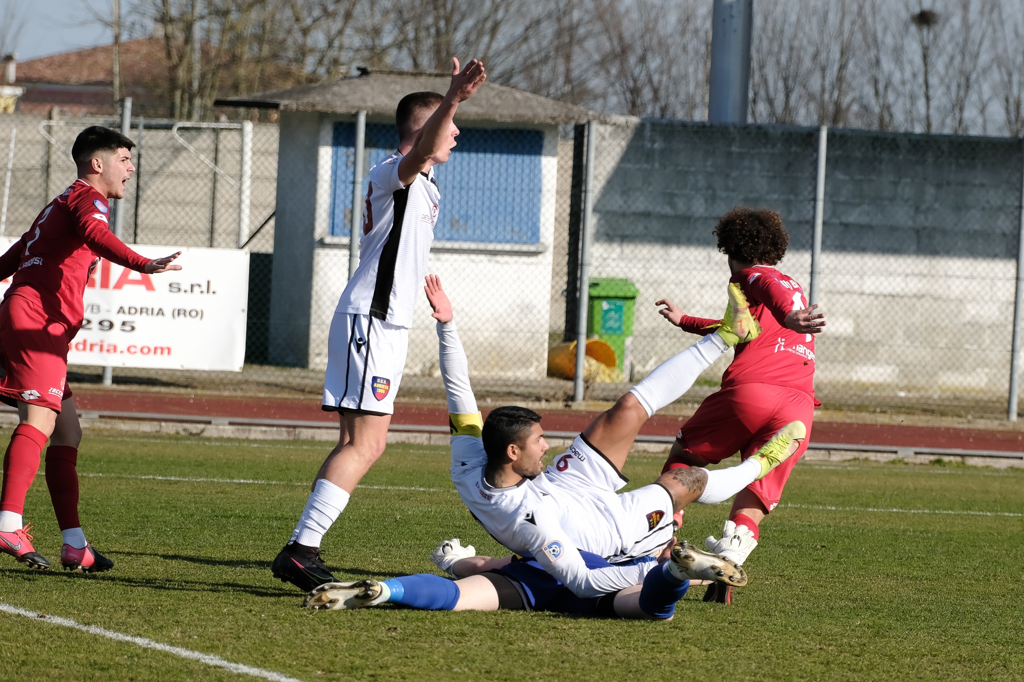 Un pareggio amaro per l'Adriese per 1-1 contro il Campodarsego di mister Masitto. Granata in 10 contro 11 per più di mezz'ora del secondo tempo. La voglia di vincere non è mancata e le occasioni vi sono state, è mancata forse un po' di fortuna in più. Dopo due minuti dall'inizio arriva la prima occasione per la squadra di casa con Costa che calcia a botta sicura, ma è bravo Boscolo Palo a deviare in angolo. Adriese in vantaggio al 6' con il rigore di Gioè. Lancio di Ben Khalek per Costa in centro area, con Boscolo Palo che non trattiene e lascia palla a Gioè, che viene atterrato fallo stesso portiere padovano. Per il direttore di gara è calcio dal dischetto. Va lo stesso Gioè che batte il portiere avversario sulla destra. Poco dopo punizione di Boccalari per Tiozzo in centro che allunga la gamba e per un niente non conclude in rete. Partita combattuta sulla zona di centrocampo con nessuna particolare occasione da entrambe le parti. Addiego ci prova su punizione, ma la palla finisce a fil di palo. Traversa clamorosa di Mazzali al 42'. Calcio di potenza del terzino sinistro da appena fuori area ed è solo la traversa che gli nega la gioia, con Boscolo Palo battuto. Subito dopo tiro preciso di Gioè, ma il portiere padovano devia in angolo. Al 43' Farinazzo ci prova dalla distanza, ma la sfera esce fuori sopra la traversa. Sì torna in campo nel secondo tempo con il Campodarsego che cerca il pareggio, ma l'Adriese si chiude bene. Al 7' Mazzali si libera sulla sinistra e la mette in mezzo per Maniero che, dribblando un avversario, calcia di potenza a filo di traversa. Errore di Boccafoglia e Addiego che s'invola verso la porta. Fallo di Tiozzo e secondo giallo per lui, espulsione, rigore per Campodarsego e Adriese in 10 uomini. Dal dischetto va proprio Addiego che calcia di potenza alla sinistra di Brzan e trova il gol del pareggio. Subito dopo occasione clamorosa di Farinazzo che, appoggiato da Gioè a due passi dalla porta conclude a fil di palo. Campodarsego vicino al raddoppio con Solinas che su un traversone non arriva per un soffio sulla sfera per chiudere in rete. Ancora calcio dalla distanza di Addiego e palla che esce fuori sulla destra. Esordio di Capellari in maglia granata al 35'. Gran salvataggio di Brzan su Solinas al 39', sulla ribattuta Alluci prova a chiudere, ma la sfera esce. Che occasione al 47' con Farinazzo che colpisce al volo, ma la sfera finisce a fil di palo. Finisce in paritá questa sfida combattuta fino alla fine.