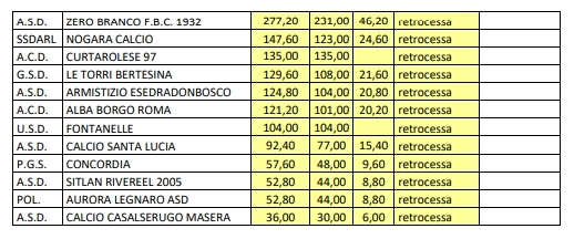 6.500 euro anche per le altre società nei primi 4 posti di questa speciale classifica, ossia Union Qdp, Vigontina San Paolo e Miranese.