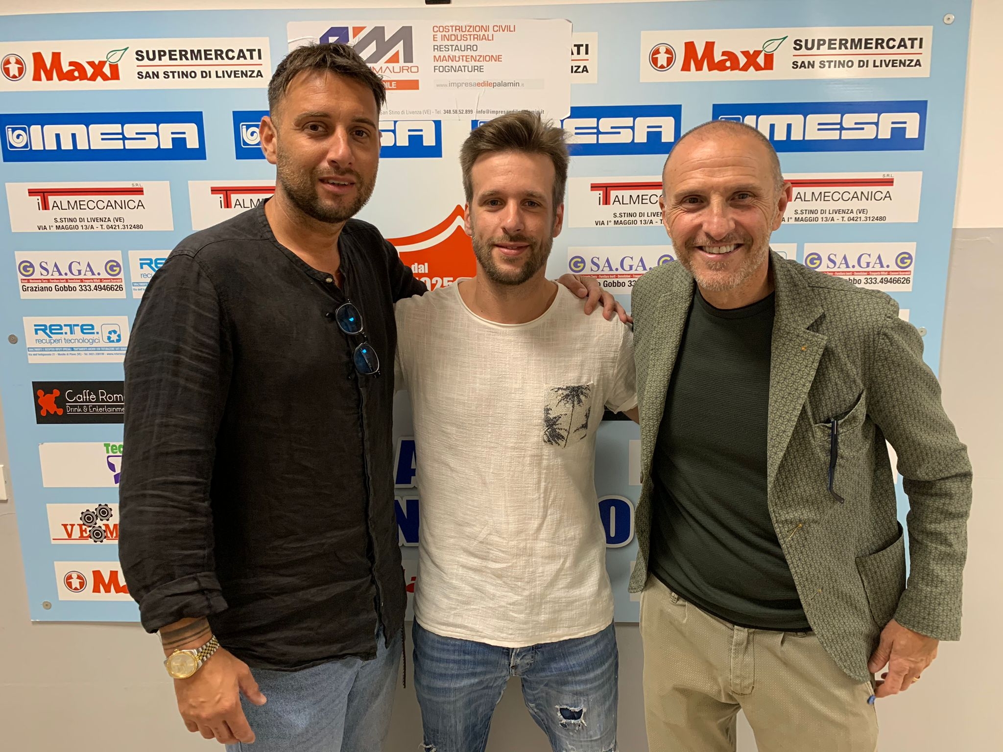 Nella galleria in basso: i due nuovi acquisti del San Stino con il direttore sportivo Andrea Borgolotto e l'allenatore Luciano Benetti (San Stino); nell'altra foto il ds Francesco Szumski, Walter Perin e il mister Gonzalo Luque (Santa Lucia).