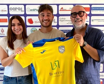 Vai alla galleriaNella foto a lato, da sinistra: l'addetta stampa Asia Cossu, Davide D'Appolonia e il presidente Leonardo Cossu. Nella galleria in basso: Mattia Manente con il direttore sportivo Emanuele Leda.