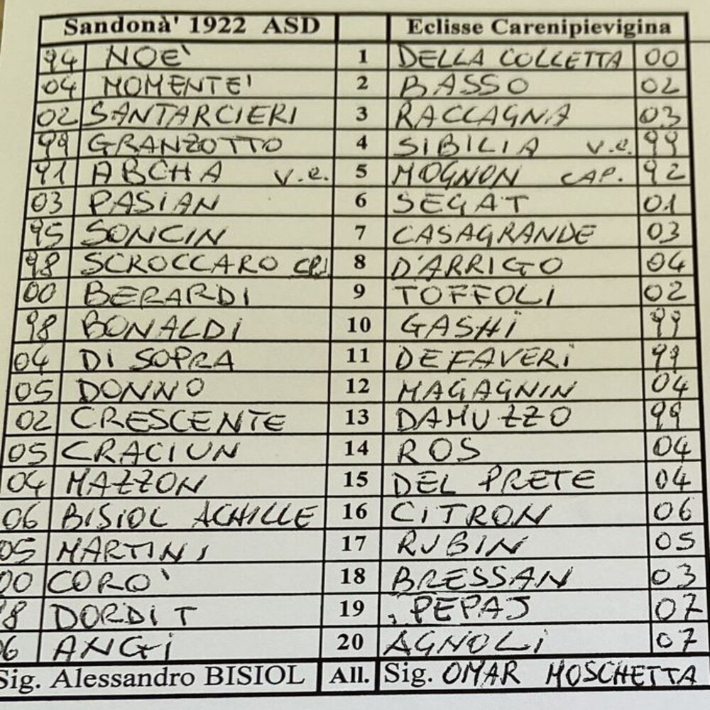 Sandonà - Eclisse Careni Pievigina 0-0 (finita)
