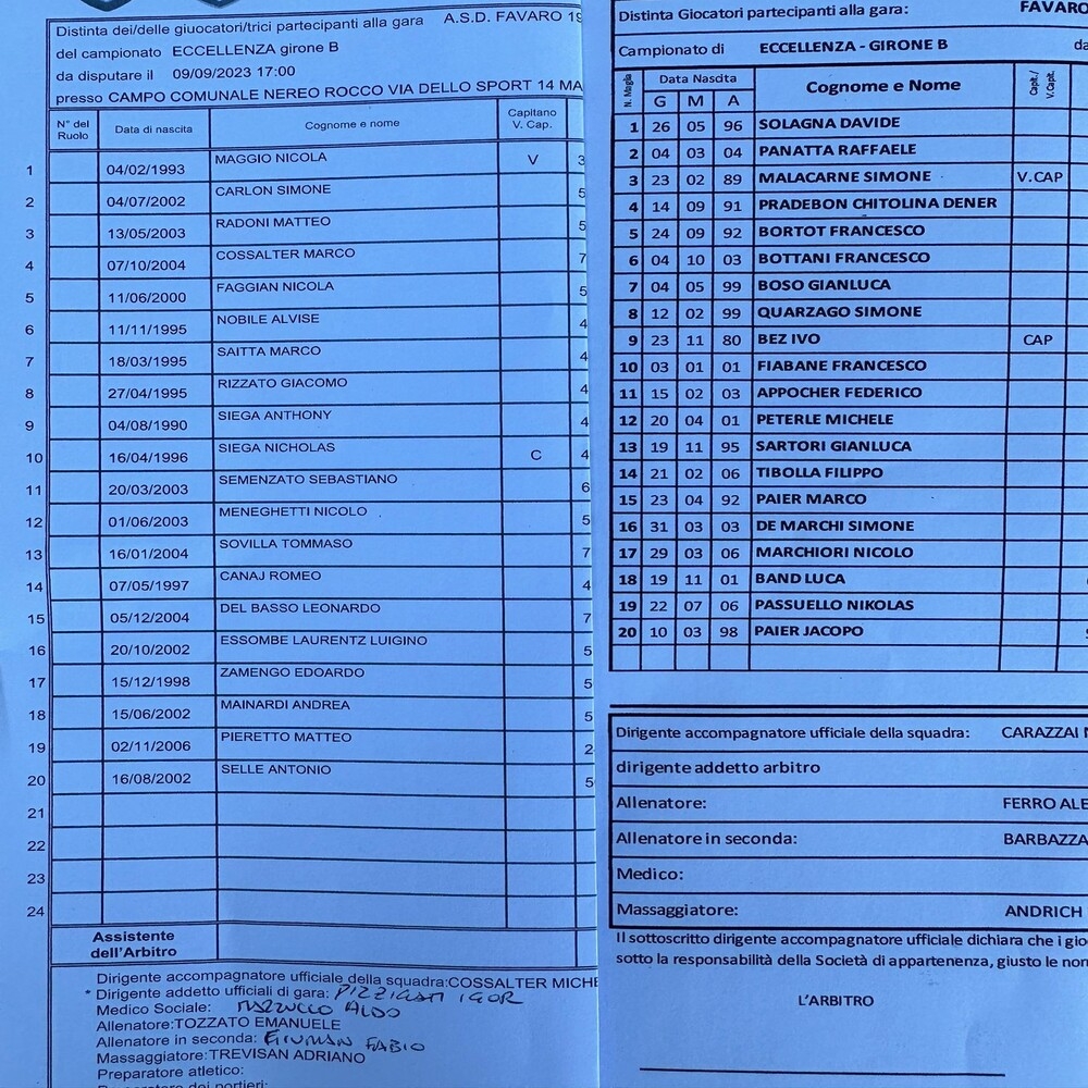 Favaro - Cavarzano Belluno 0-1 (giocata ieri)