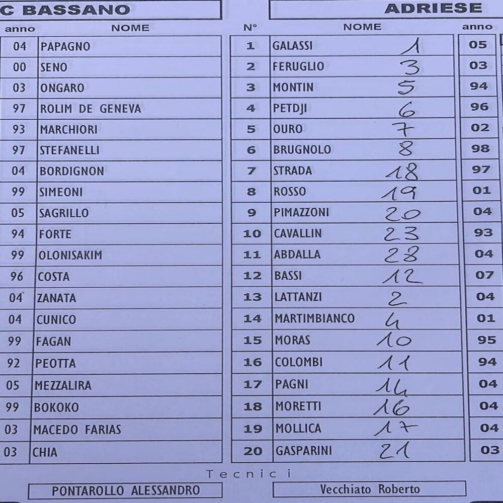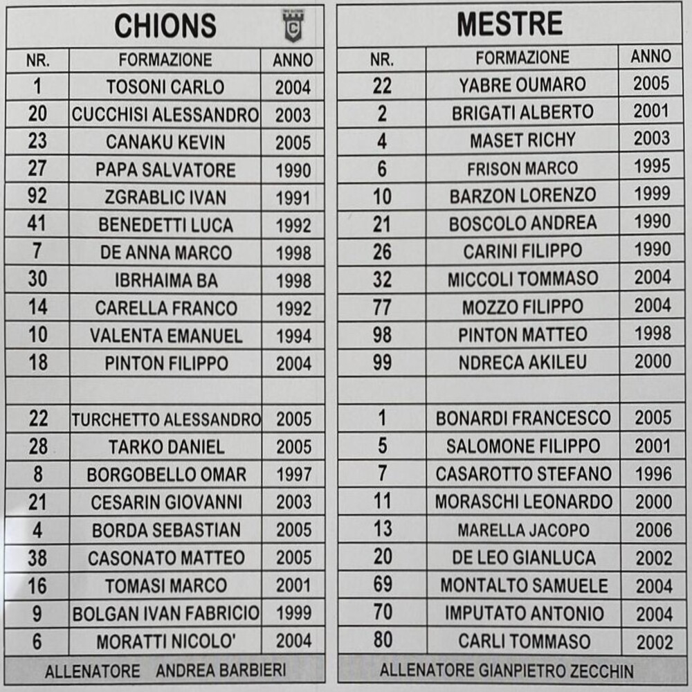 Reti: 3' pt Barzon (M), 13' pt Ba (C), 29' st Moraschi (M)