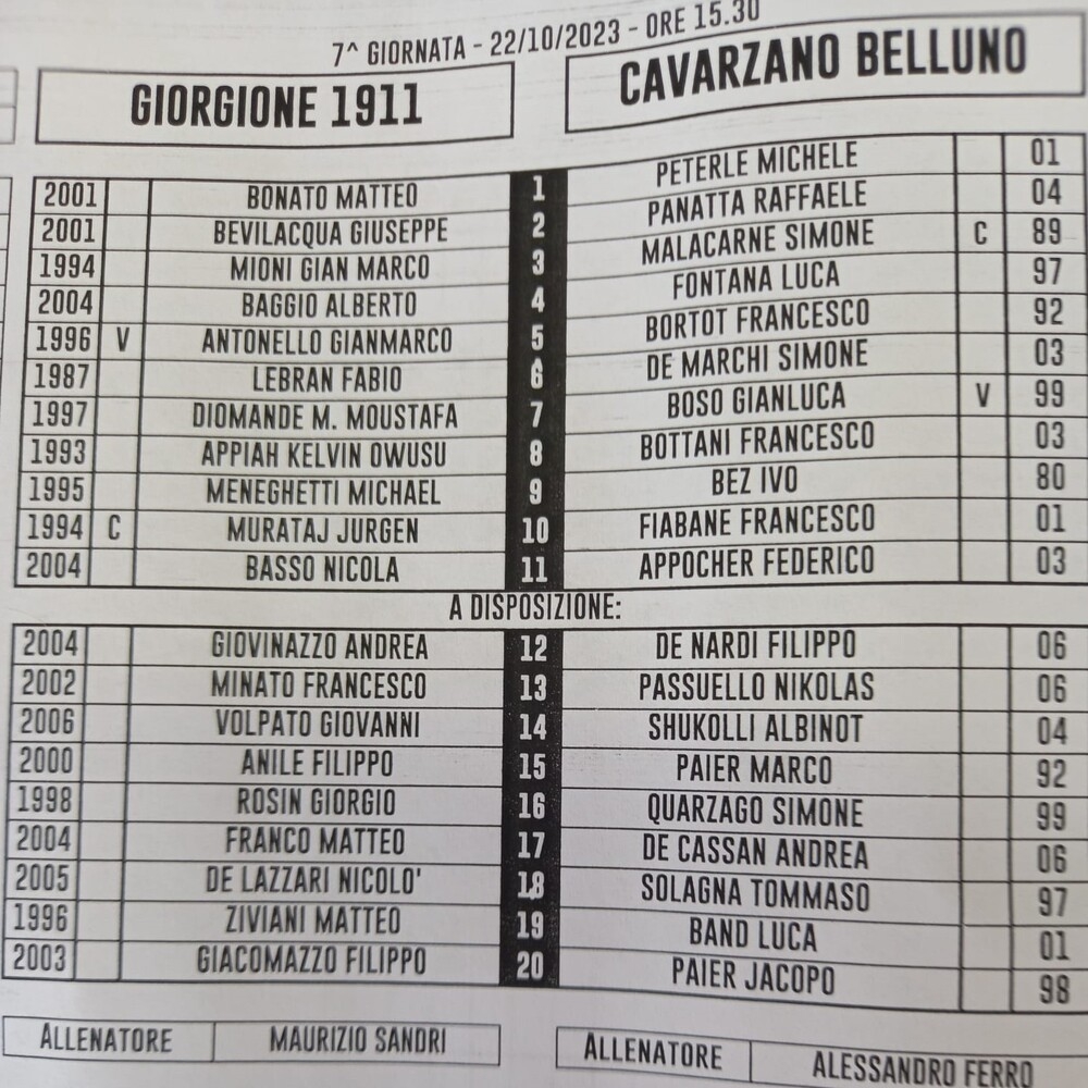 Giorgione - Cavarzano Belluno 4-2 (finita)
