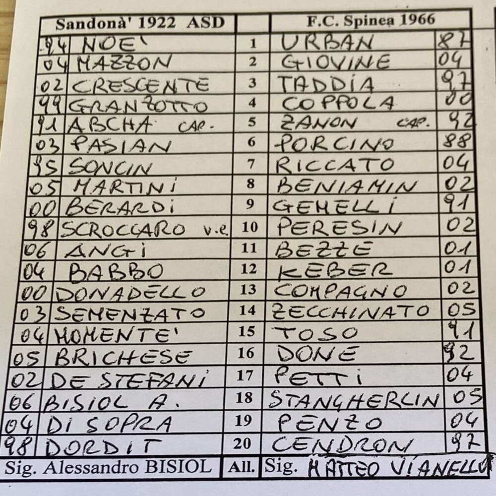 Sandonà - Spinea 3-1 (finita)