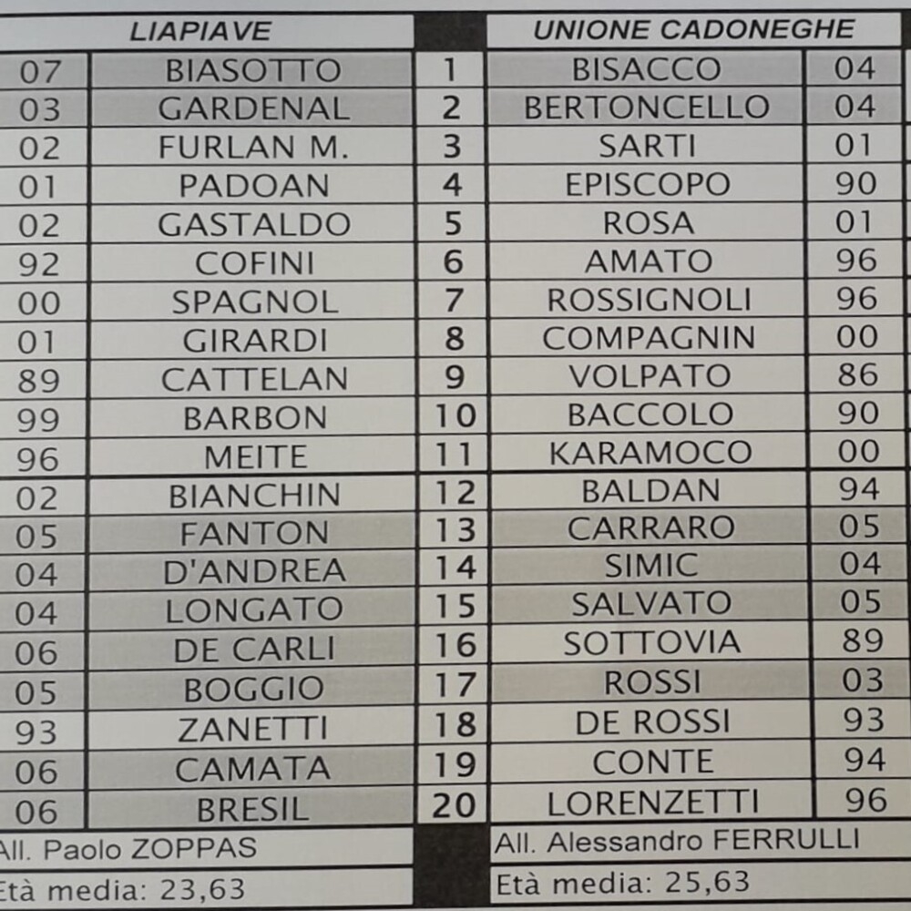 Reti: 10' pt Barichello (U), 24' pt Cappella (U), 26' pt Barichello (U), 40' st Sartori (U), 46' st Messedaglia (C)