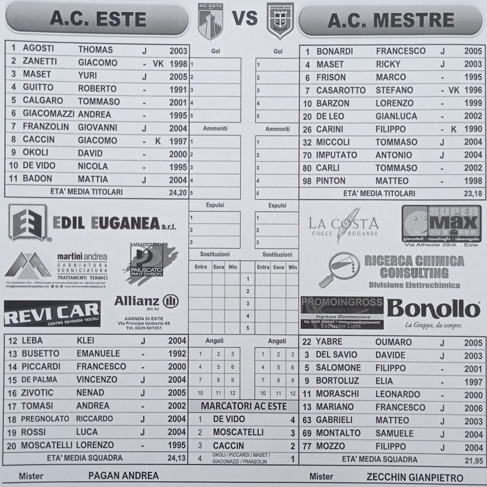 Reti: 21' pt Badon (E), 5' st De Vido (E), 41' st Moraschi (M)