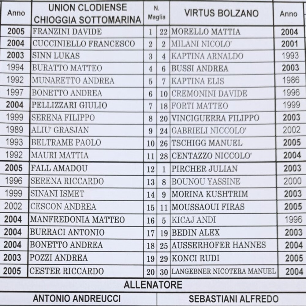 Union Clodiense - Virtus Bolzano 3-0 (finita)