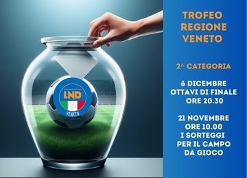 Si terrà martedì prossimo, 21 novembre, alle ore 10, il sorteggio per stabilire chi giocherà in casa gli ottavi di finale del Trofeo Veneto di Seconda categoria, in programma mercoledì 6 dicembre in gare di sola andata.