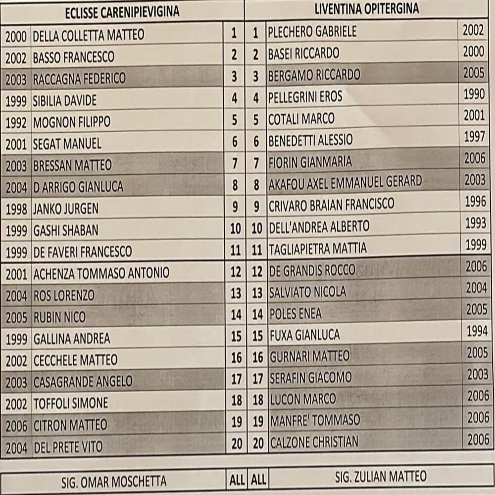 Eclisse Careni Pievigina - Liventina Opitergina 1-1 (finita)