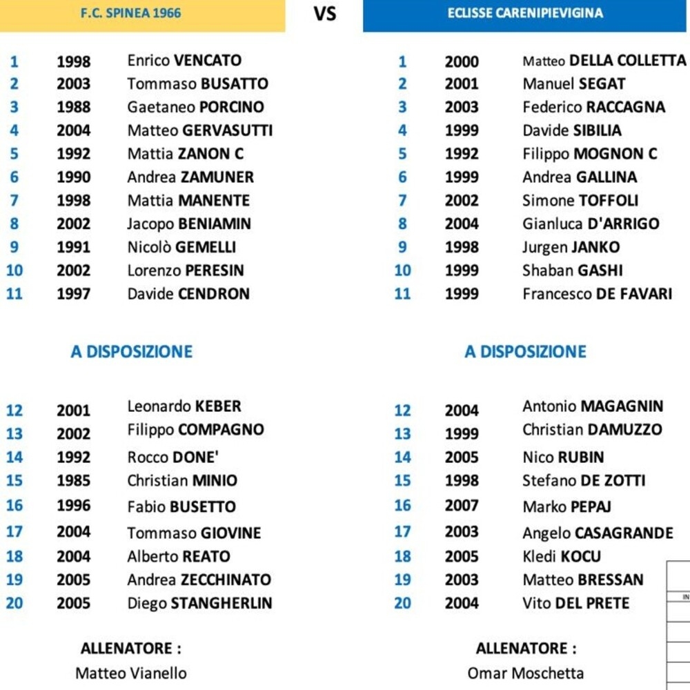 Spinea - Eclisse Careni Pievigina 2-0 (finita)