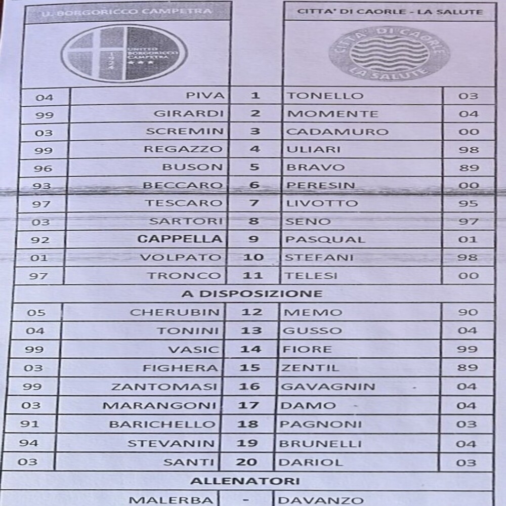 United Borgoricco Campetra - Caorle La Salute 4-1 (finita)
