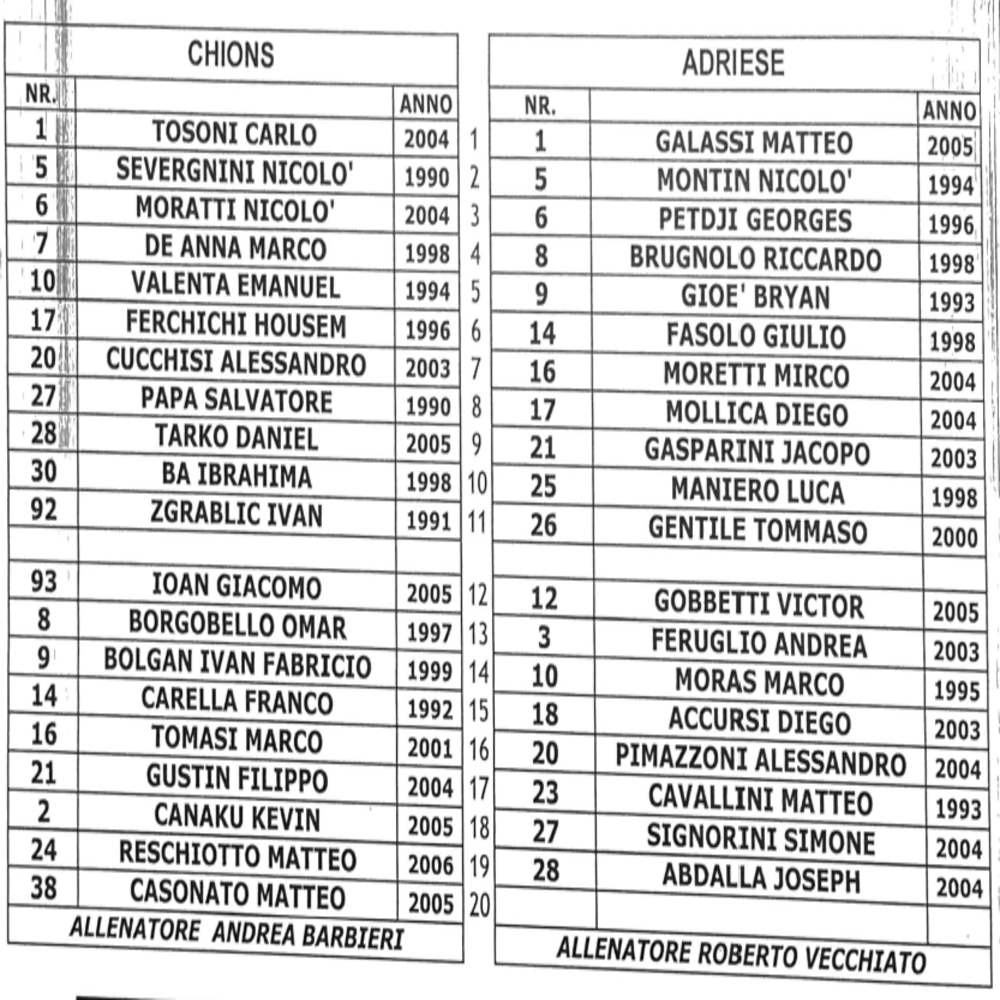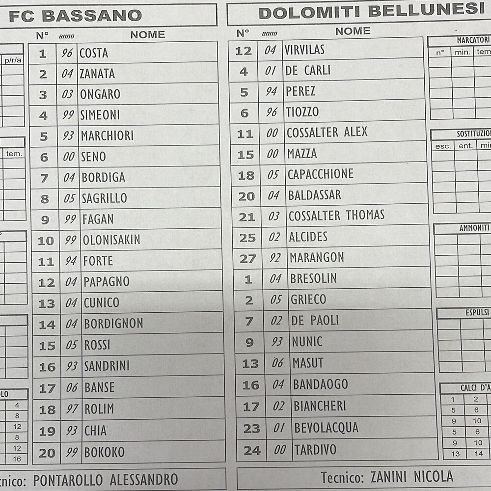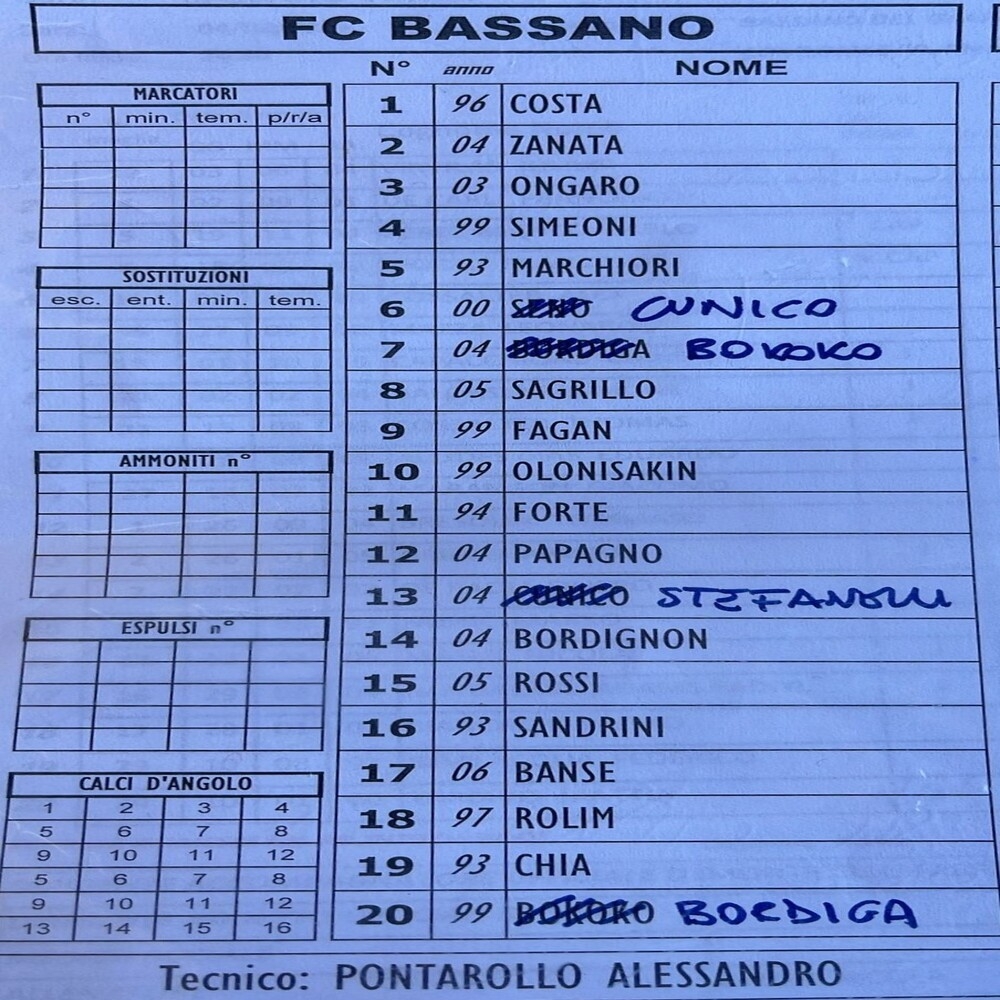 Nell'ultima immagine in galleria è riportata la formazione corretta del Bassano.