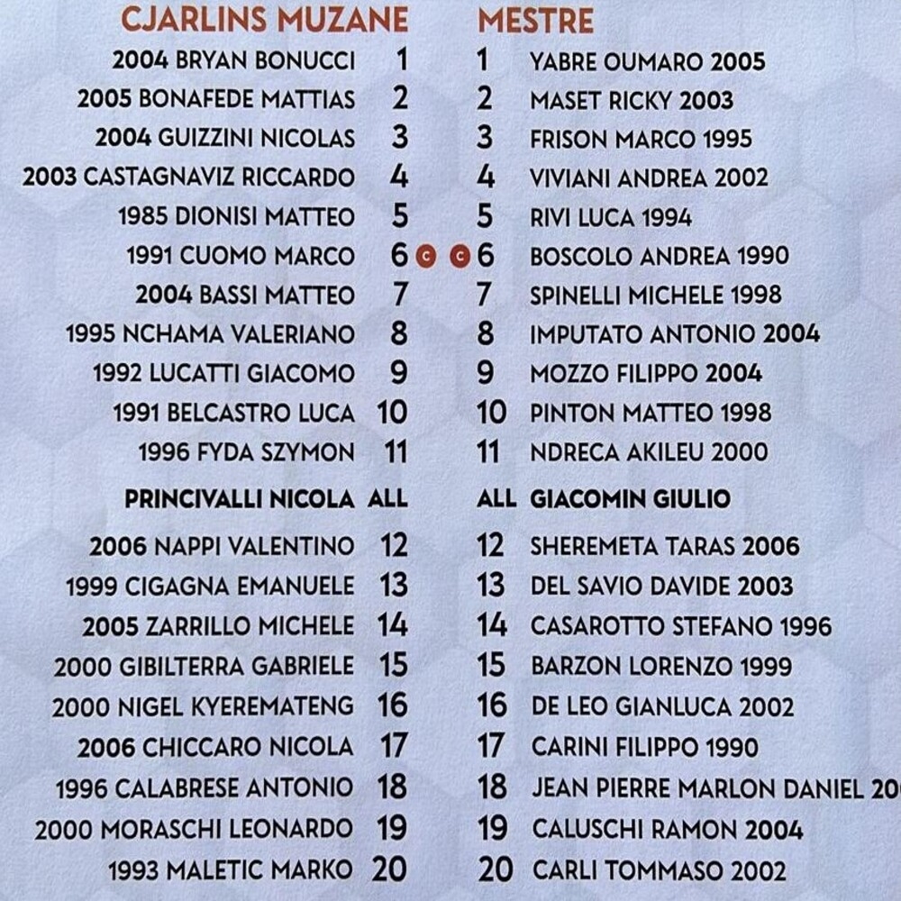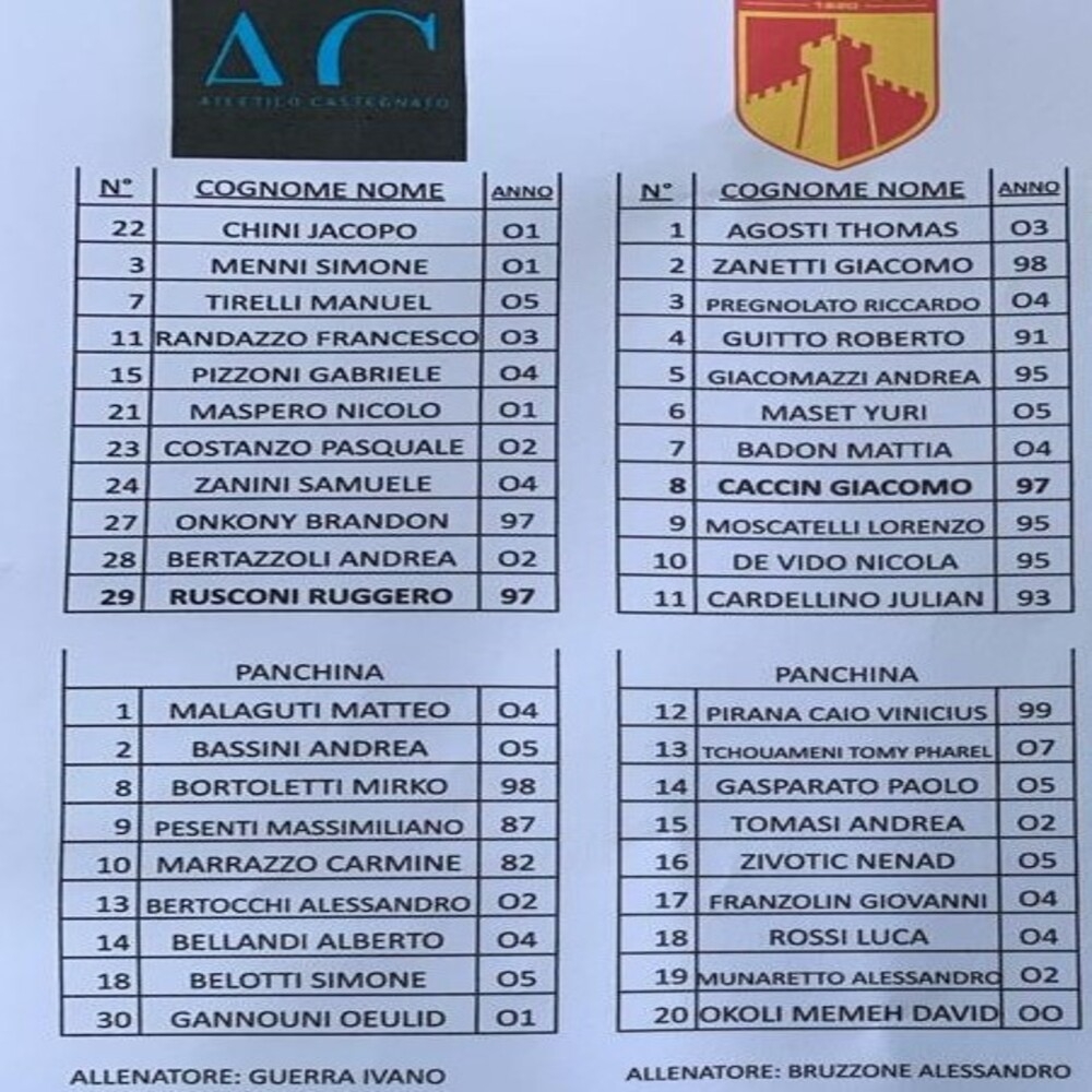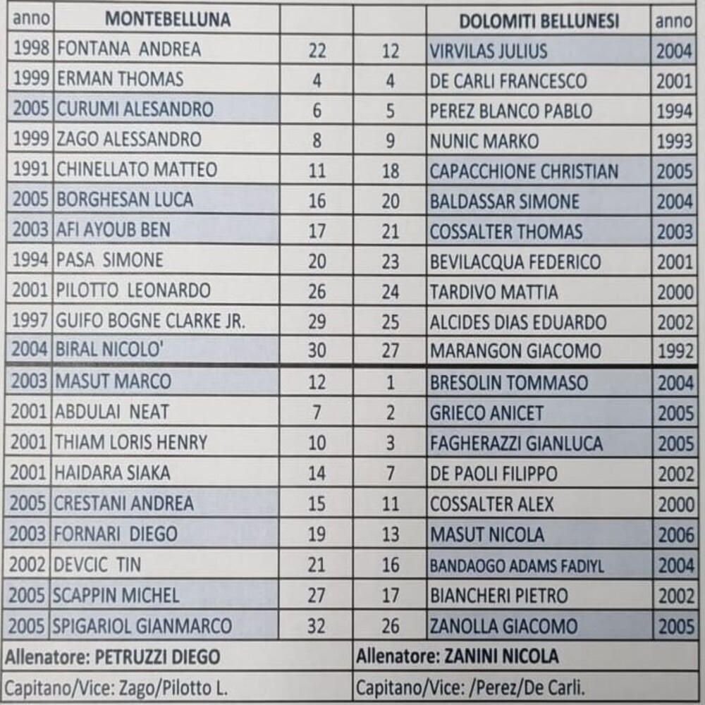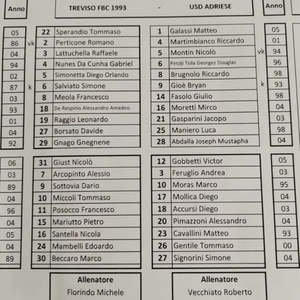 N.B. Nel Treviso non gioca Salviato, al suo posto Arcopinto.