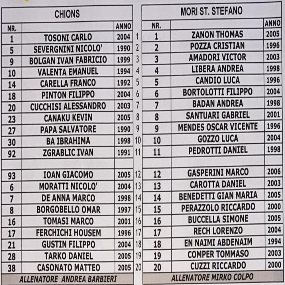 Chions - Mori Santo Stefano 2-1 (finita)