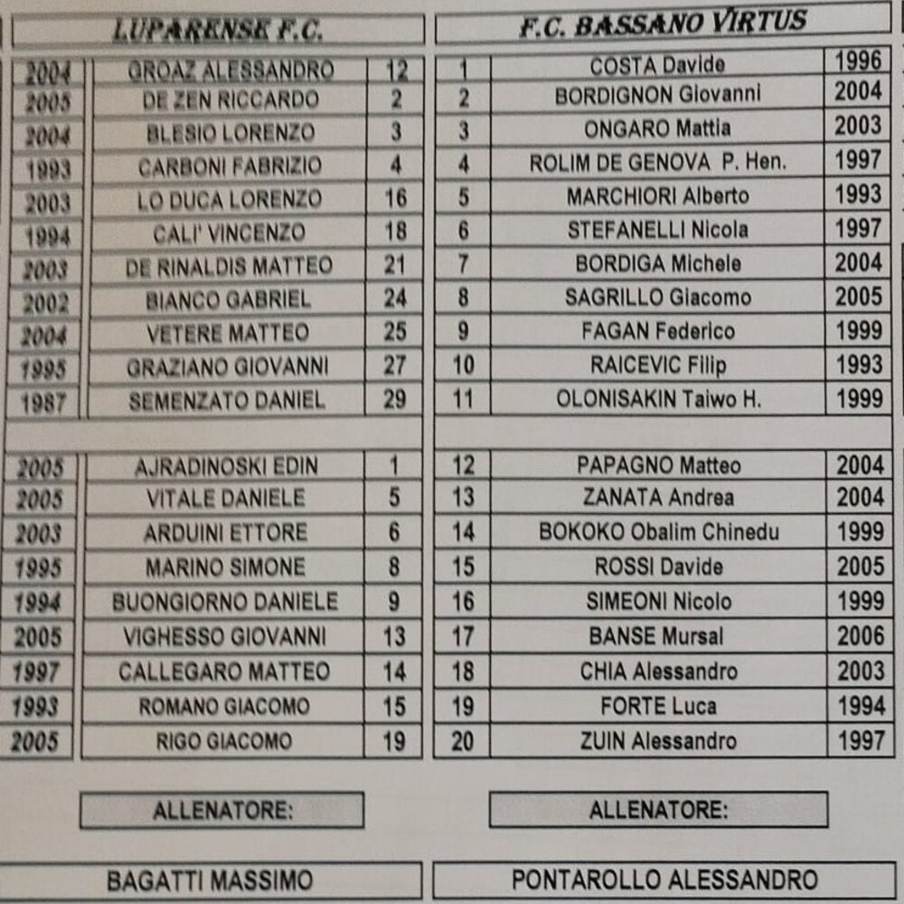 Luparense - Bassano 0-1 (finita)