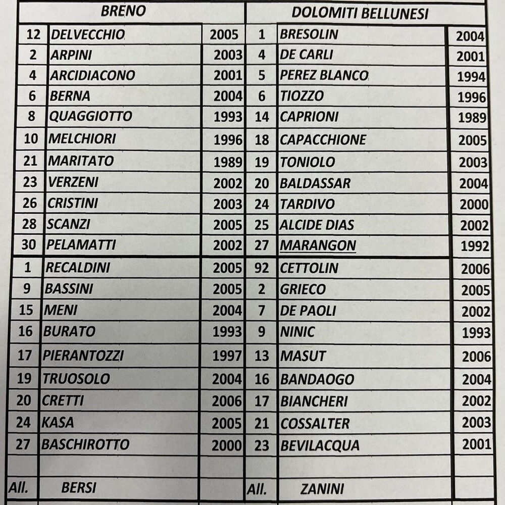 Note: al 35' pt Bresolin (D) para rigore a Maritato (B)