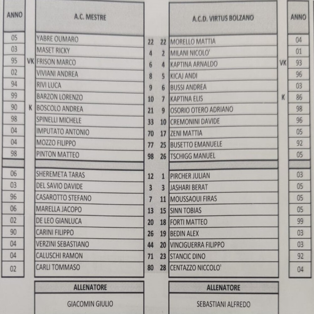 Mestre - Virtus Bolzano 1-0 (finita)