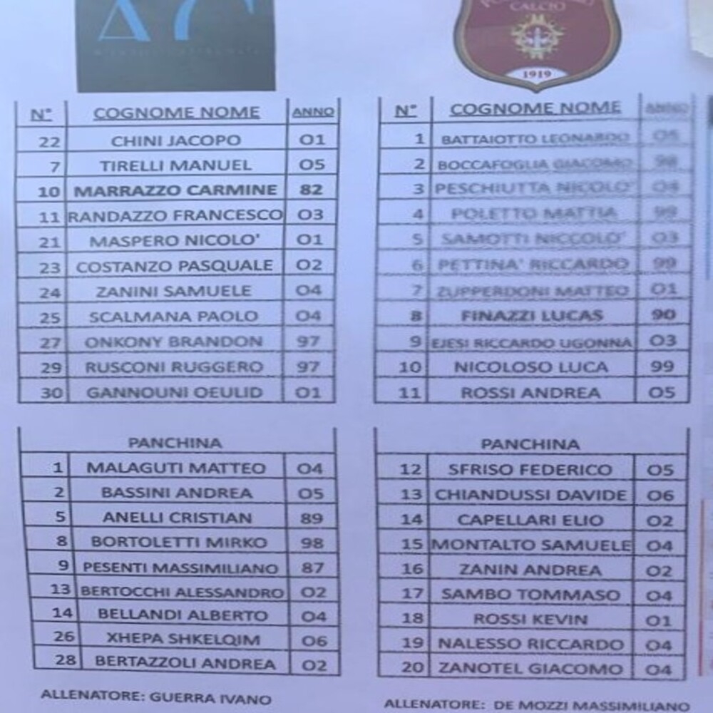 Vai alla galleriaNella galleria immagini in basso all'articolo sono riportate le formazioni.