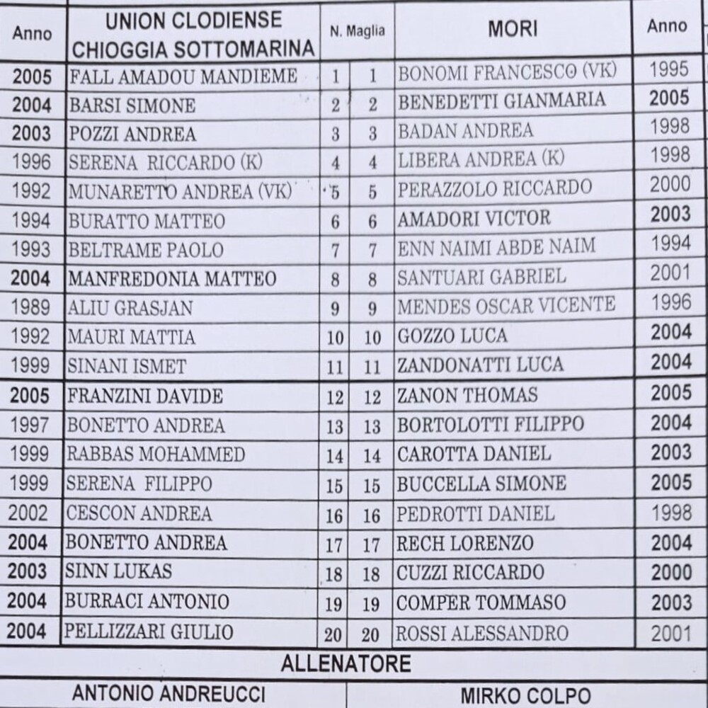 Union Clodiense - Mori Santo Stefano 2-0 (finita)