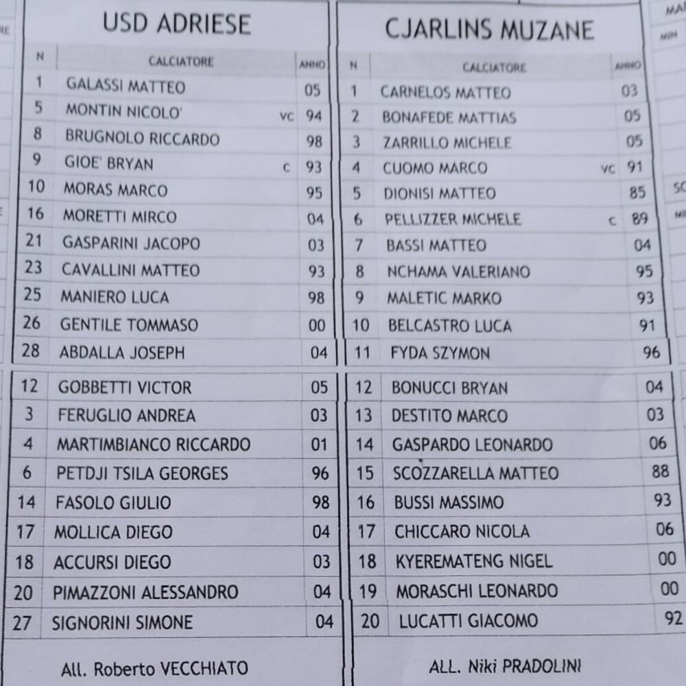 Adriese - Cjarlins Muzane 0-0 (finita)