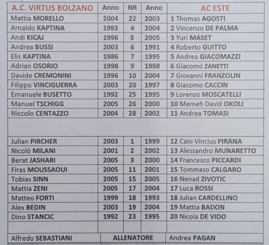 Este: Agosti, De Palma, Maset, Guitto, Giacomazzi, Zanetti, Franzolin, Caccin, Moscatelli, Okoli, Tomasi.