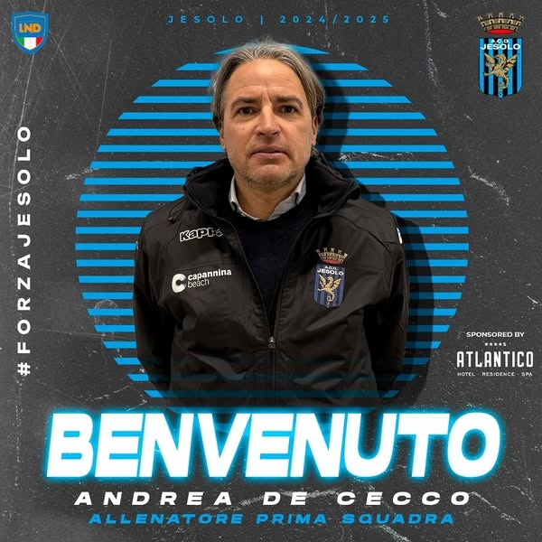 Il comunicato ufficiale: "La società Acd Jesolo comunica che il nuovo allenatore della Prima Squadra è Andrea De Cecco. Andrea è nato l’11 maggio 1979, abita ad Eraclea ed è cresciuto nel vivaio del Venezia. Ha vestito, da mediano, le maglie di Portogruaro, Sandonà, Lodigiani, Olbia, Jesolo (la stagione della C2 2005/2006), Barletta, Opitergina, Liventina, Sanvitese, con un totale di oltre 300 presenze tra Serie C1, C2 e Serie D.