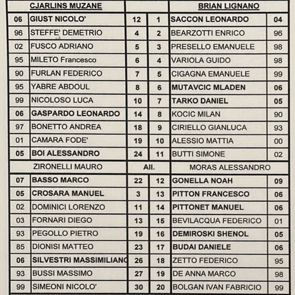 Brian Lignano: Saccon, Bearzotti, Presello, Variola, Cigagna, Mutavcic, Tarko, Kocic, Ciriello, Alessio, Butti.