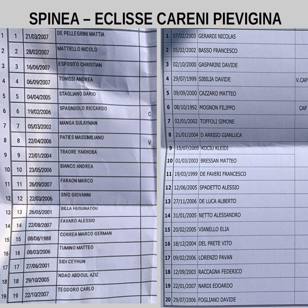 Spinea: De Pellegrini, Mattiello, Esposito, Tonissi, Stagliano, Spagnuolo, Manga, Paties, Traore, Bianco, Faraon.