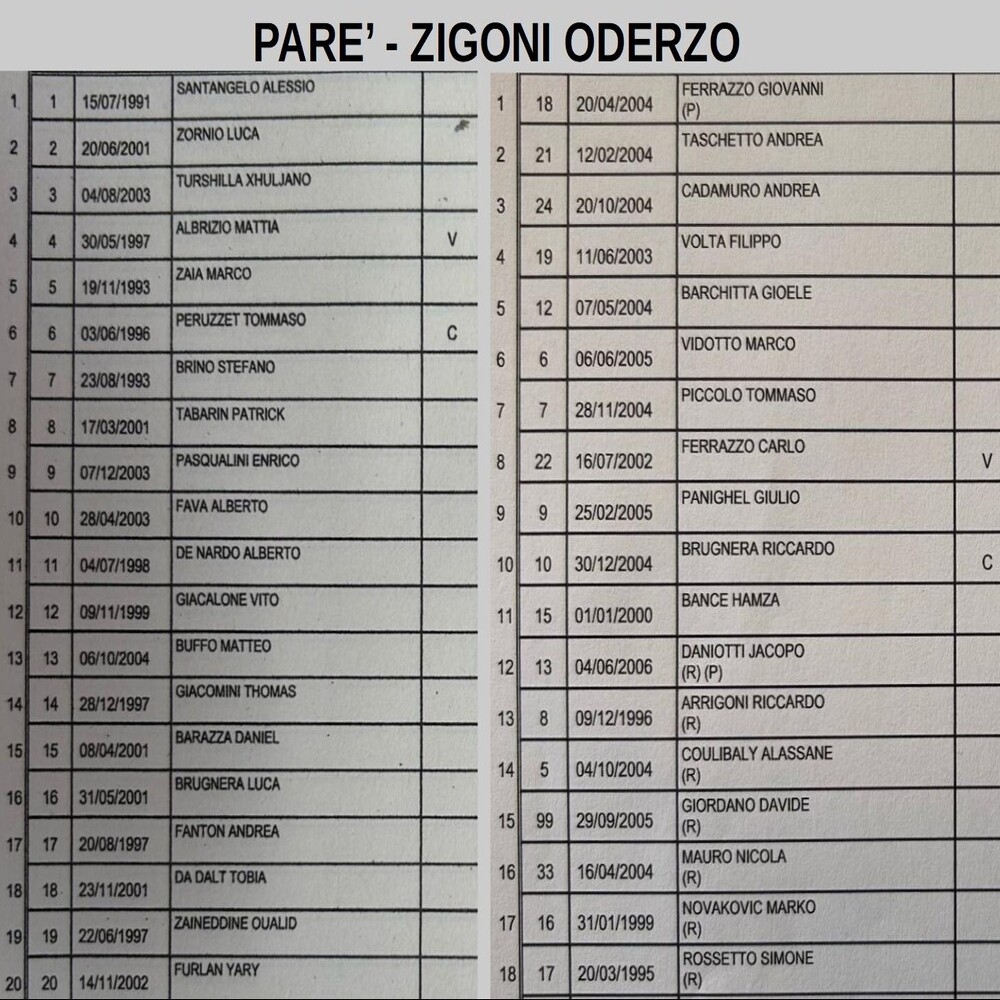 Zigoni Oderzo stabile al settimo posto con 33 punti, a -3 dal quinto e a +10 sull'ottavo. Il Parè sale in penultima posizione.