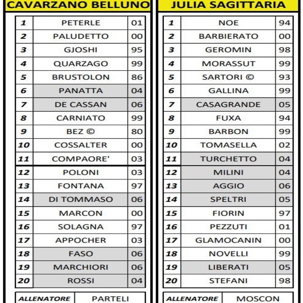 Vai alla galleriaNella galleria immagini in basso all'articolo sono riportate le formazioni.