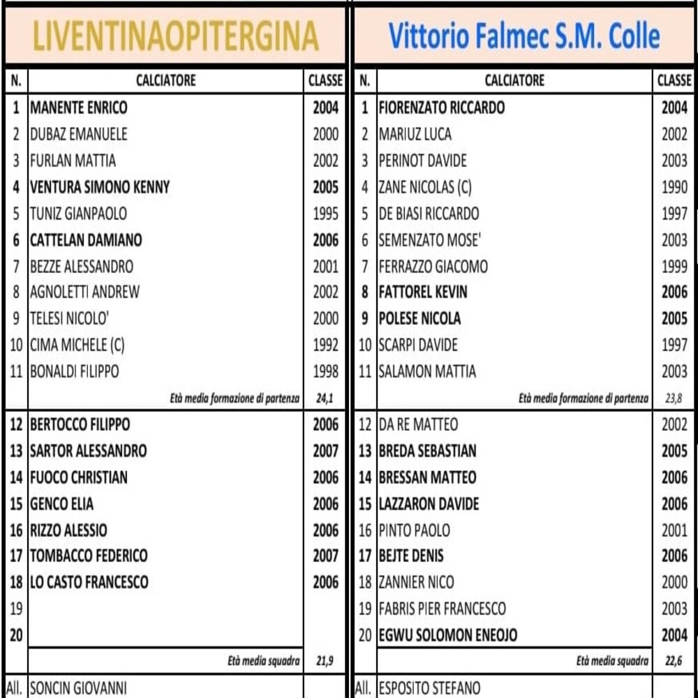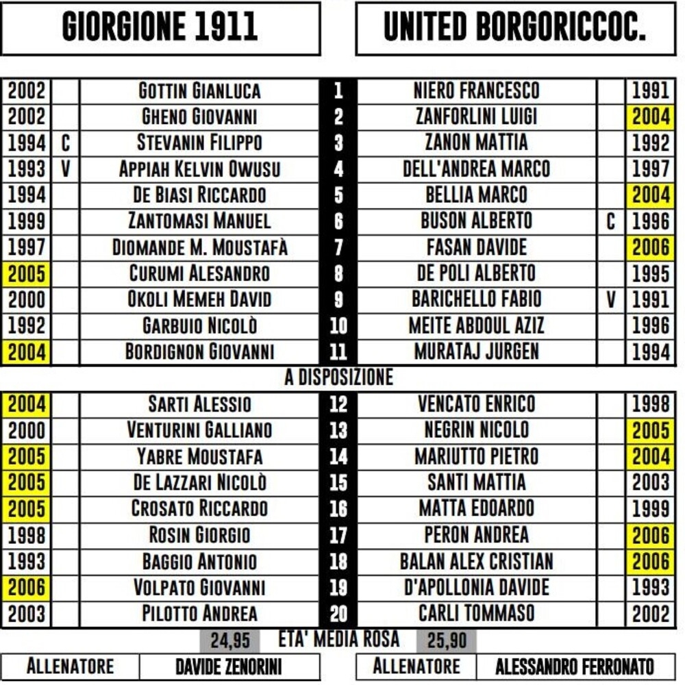 Note: nel pt Abrefah (M) fallisce un rigore