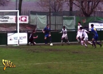 L'altro ieri su Canale 5, per la rubrica "Striscia lo striscione", è stata trasmessa la prodezza dell'attaccante del Porto Viro nella partita del 9 febbraio contro il Montorio