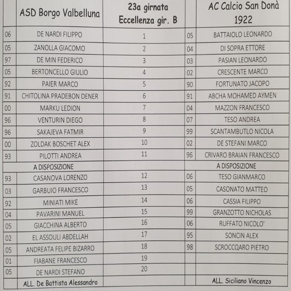 Borgo Valbelluna - Sandonà 0-1 (finita)