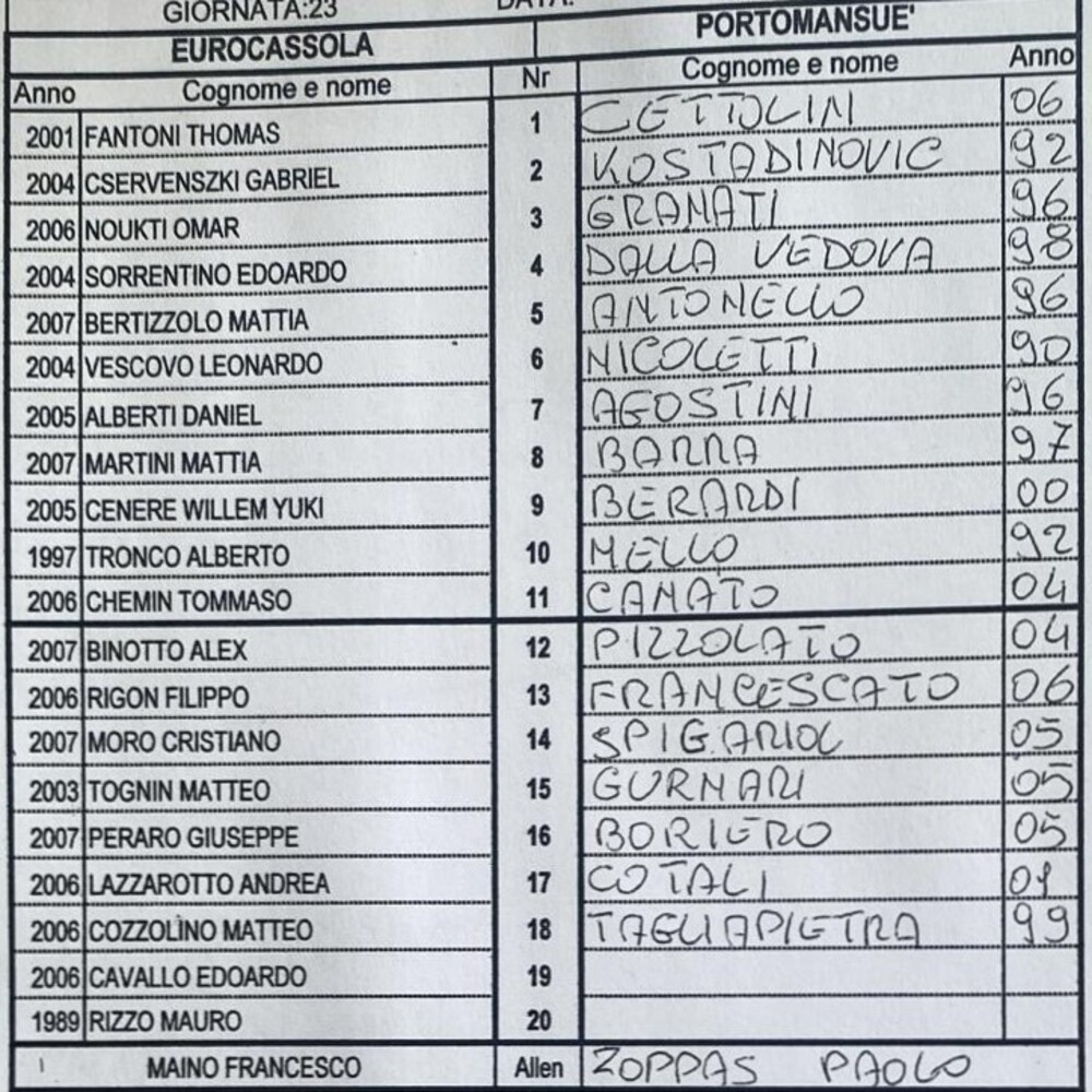 Union Eurocassola - PortoMansuè 2-4 (finita)