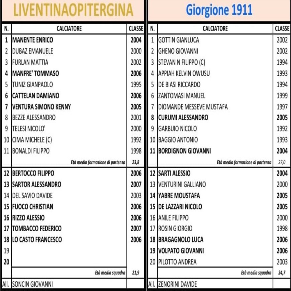 Vai alla galleriaNella galleria immagini in basso all'articolo sono riportate le formazioni.