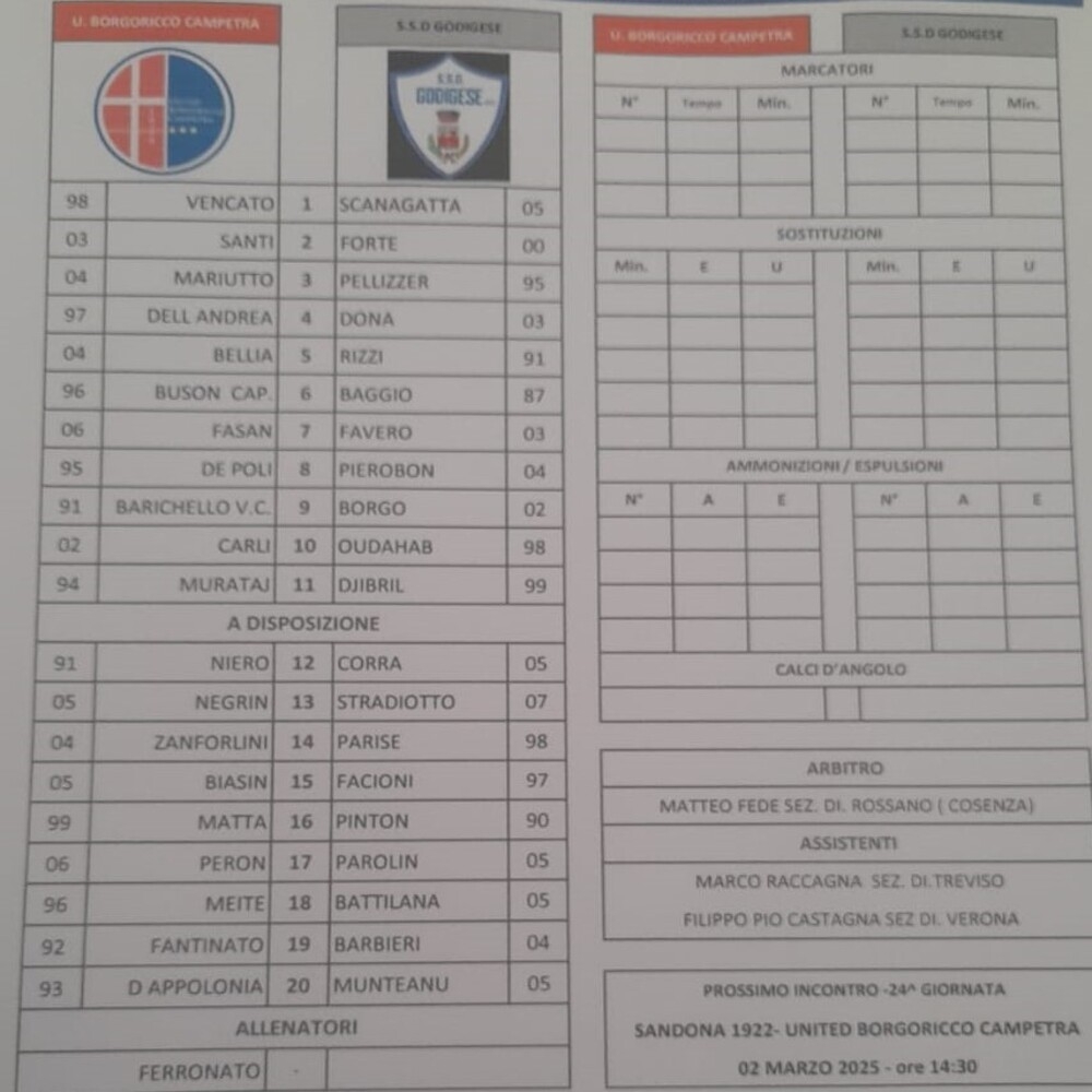 United Borgoricco Campetra - Godigese 1-1 (finita)