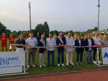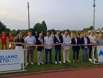 Vai alla galleriaNella foto: l'inaugurazione del nuovo manto erboso dello stadio di Mogliano e, sullo sfondo, Union QdP e Unione LPV prima del fischio d'inizio.
