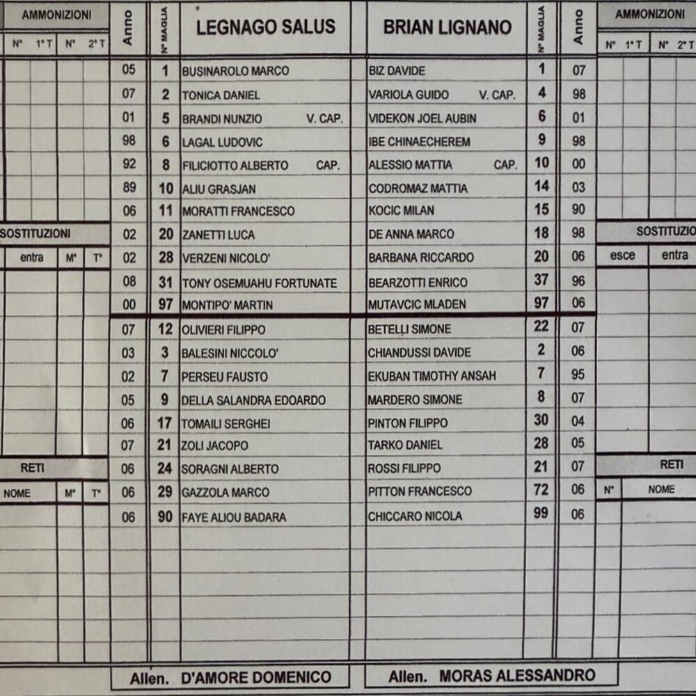 Legnago Salus - Brian Lignano 1-2 (finita)