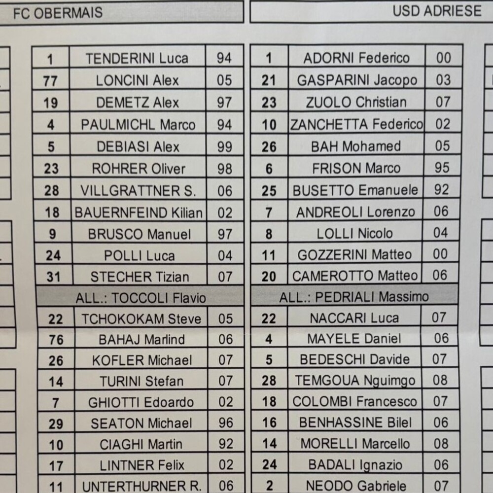 Obermais - Adriese 1-0 (finita)